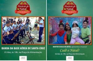 Para abrir a programação, nesta sexta, 1º de dezembro, quem se apresentou foi a Banda de Música da Base Aérea de Santa Cruz. No repertório, as tradicionais canções natalinas. No sábado, foi a vez da Escola de Artes Maktub, que levou ao público o musical “Cadê o Natal?” . A performance, cheia de música e dança, conta a história de uma menina que deixa de acreditar no Natal, acabando assim com a magia dos Duendes que não conseguem produzir os presentes natalinos. A escola voltará ao espaço no domingo, com o pocket show “Macktub”, na voz dos músicos Luazi e João Loroza, filho do ator e cantor Sergio Loroza. O moderno e animado musical mescla os clássicos natalinos com músicas pop. Toda programação é gratuita e as apresentações acontecem às 19h, na Praça de Alimentação – Piso L2.