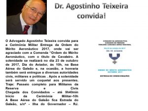3. Dr. Agostinho Teixeira será agraciado com a Comenda “Ordem do Mérito Aeronáutico”