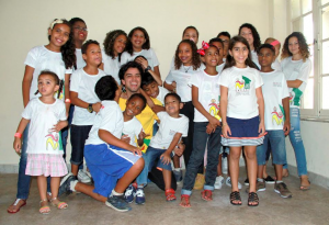 Os atores posaram para fotos com as crianças atendidas pela instituição. Rodrigo Simas roubou a cena ao chegar acompanhado de sua mãe.