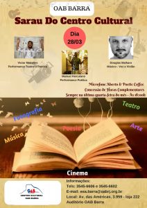 Sarau do Centro Cultural da OAB/Barra da Tijuca será no dia 28 de março Denise Machado2019-09-27T17:57:41-03:0021/03/2018 07:03|Categories: Sem categoria|0 Comentários Deixar um comentário Cancelar respostaComentário